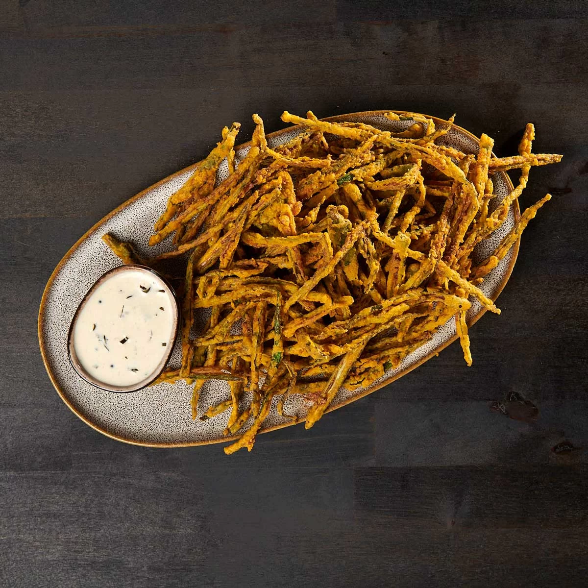 Crispy okra sticks seasoned lightly with our special okra seasoning and served with a smooth buttermilk sauce. These fries provide a crunchy, delightful alternative to the ordinary, combining southern comfort with a touch of Indian spice.